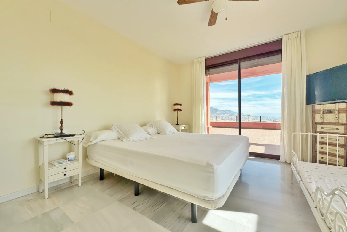 Espectacular ático de 85 m² de vivienda más 145 m² de terraza, orientado al sur y con unas vistas impresionantes al mar y a la bahía de Fuengirola desde todas las estancias.