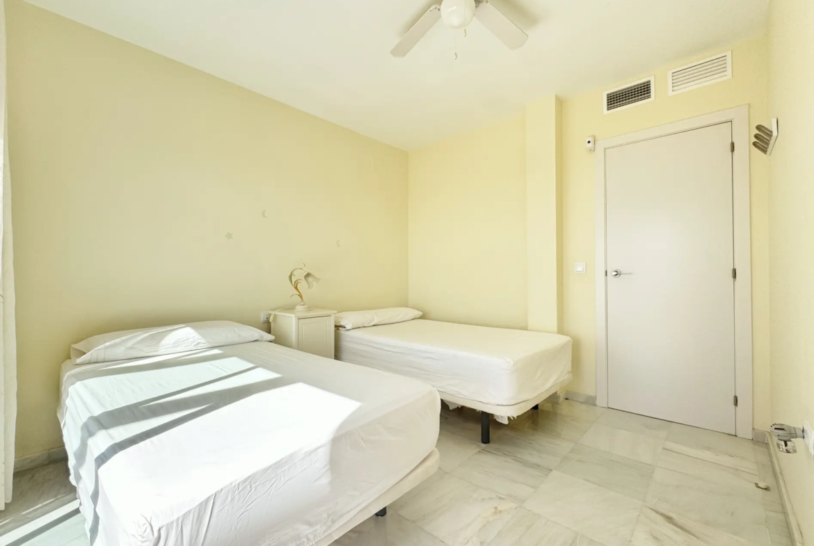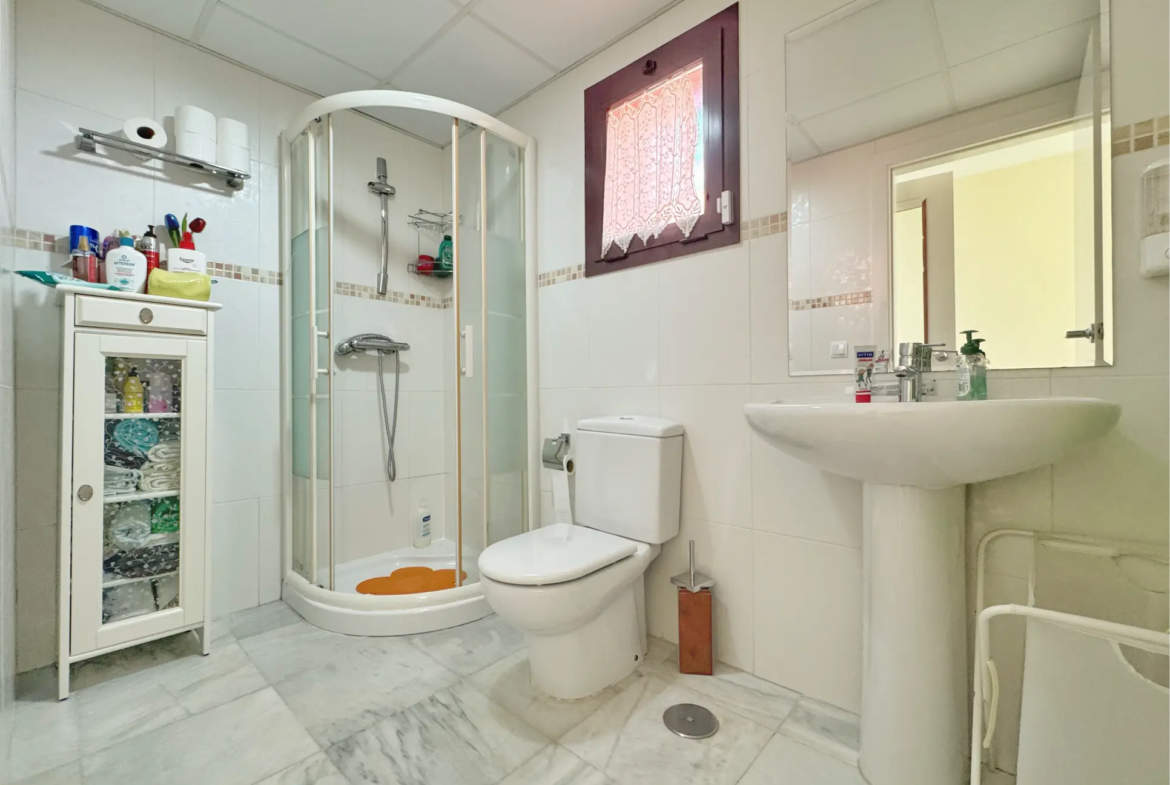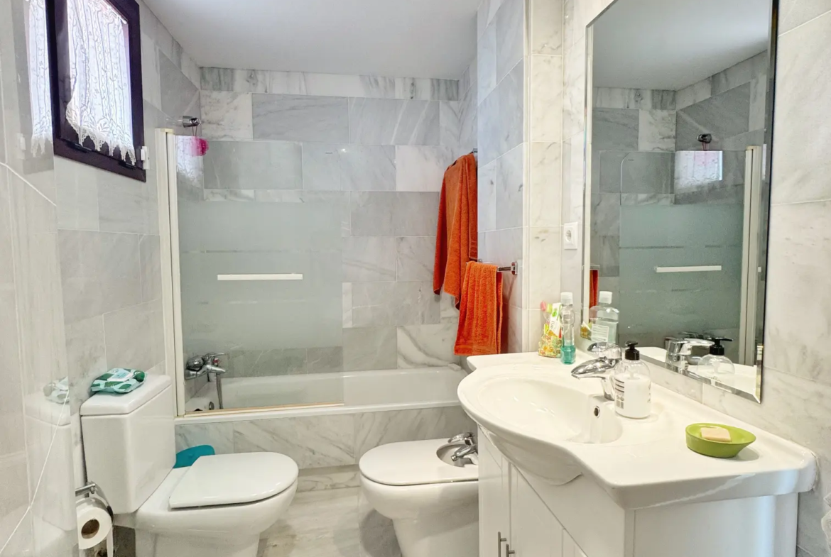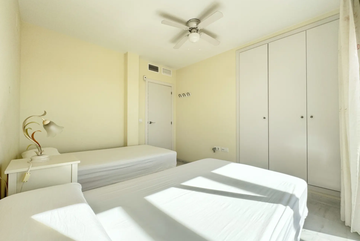 El complejo ofrece piscina comunitaria abierta todo el año, garantizando ocio y relax en cualquier temporada. Además, la vivienda cuenta con servicio de alarma (85 €/mes no incluido en el precio).