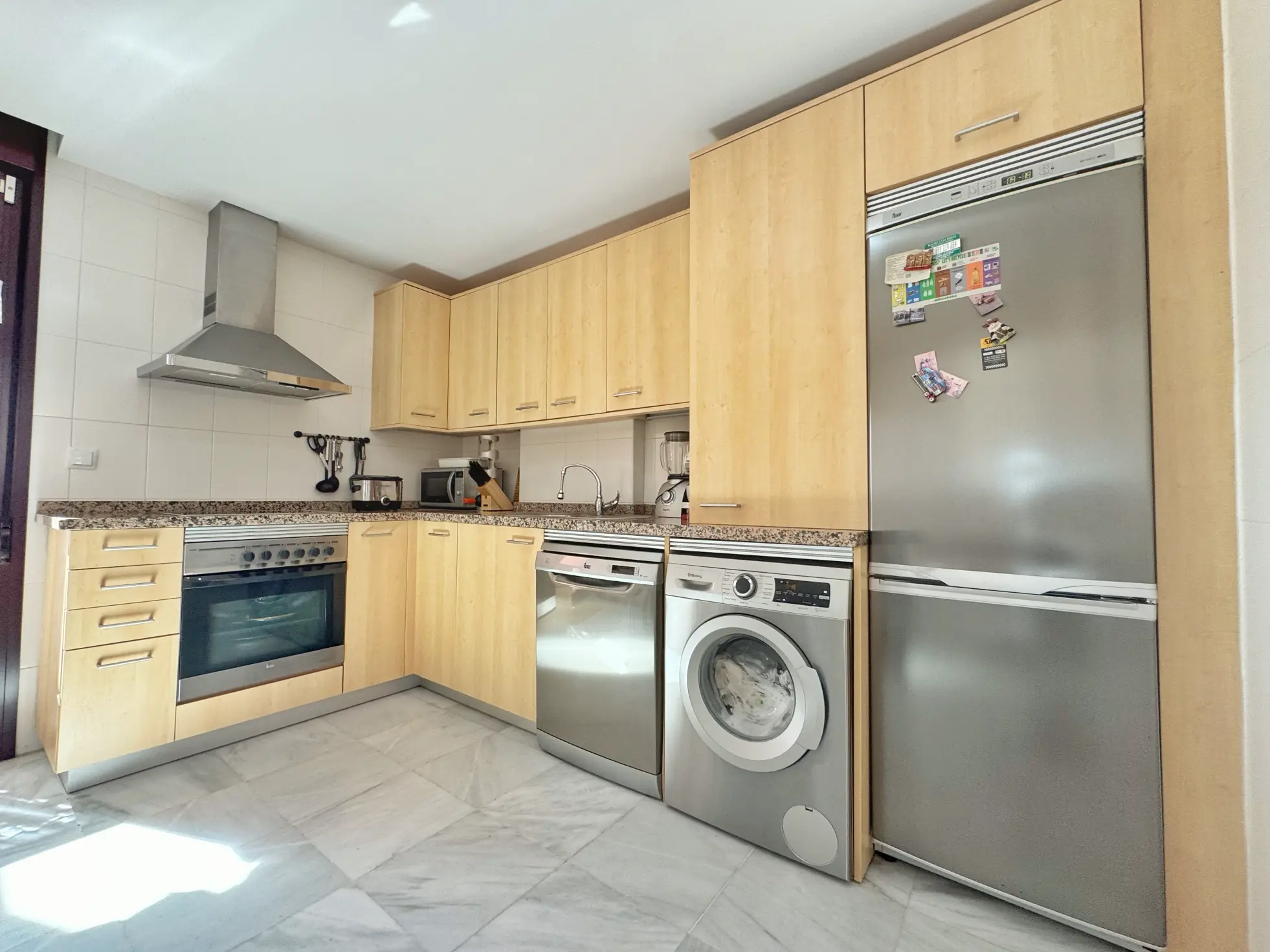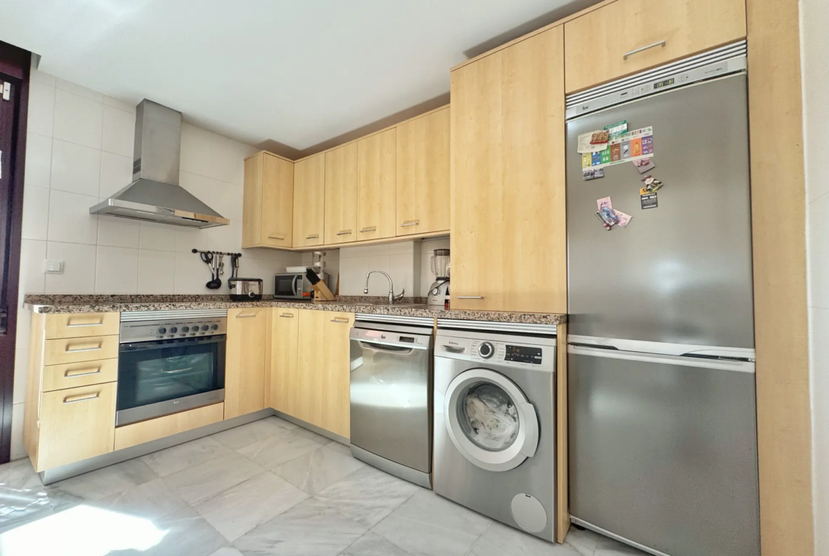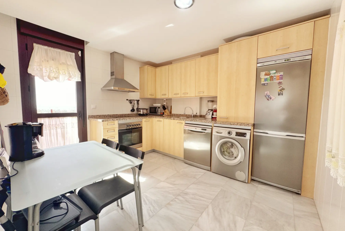 La vivienda cuenta con 2 dormitorios, 2 baños completos, un amplio salón con acceso directo a la terraza y cocina totalmente equipada con salida también al exterior. El ático dispone de aire acondicionado centralizado frío/calor, internet incluido en el precio y plaza de garaje privada.