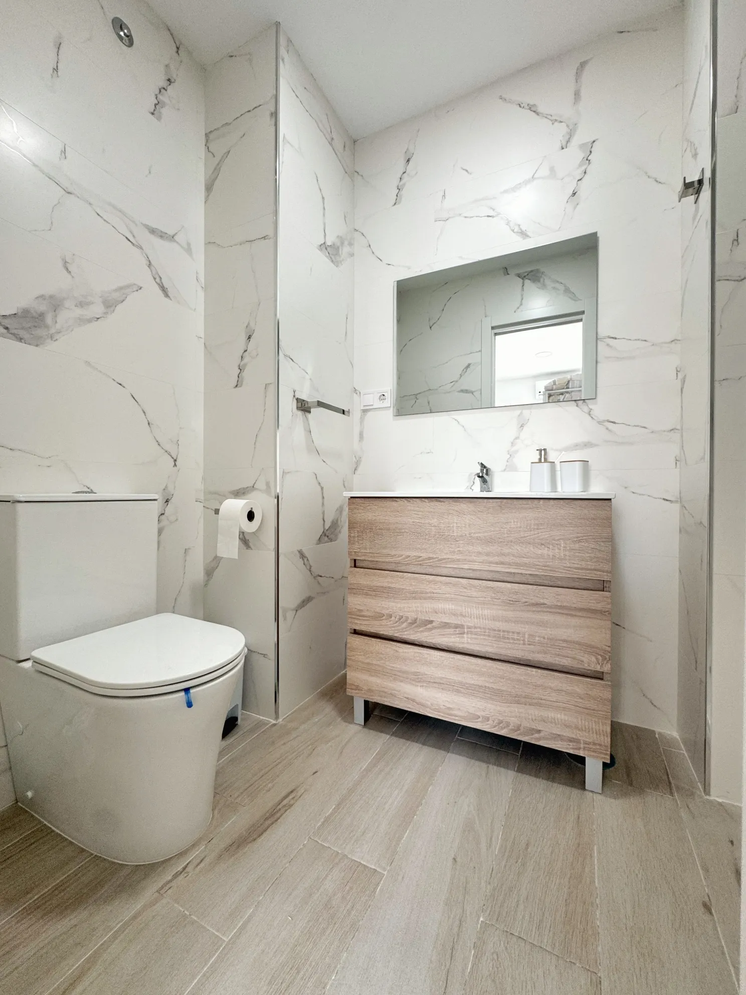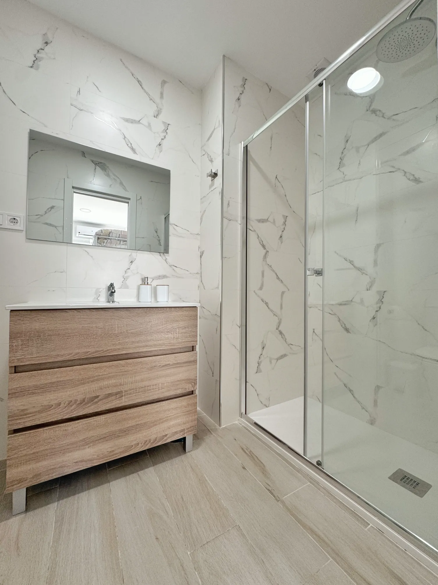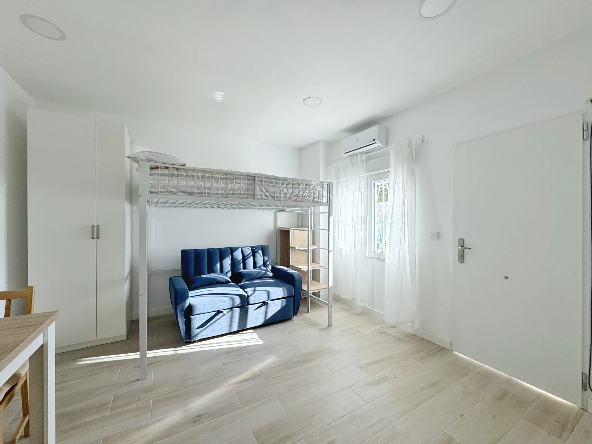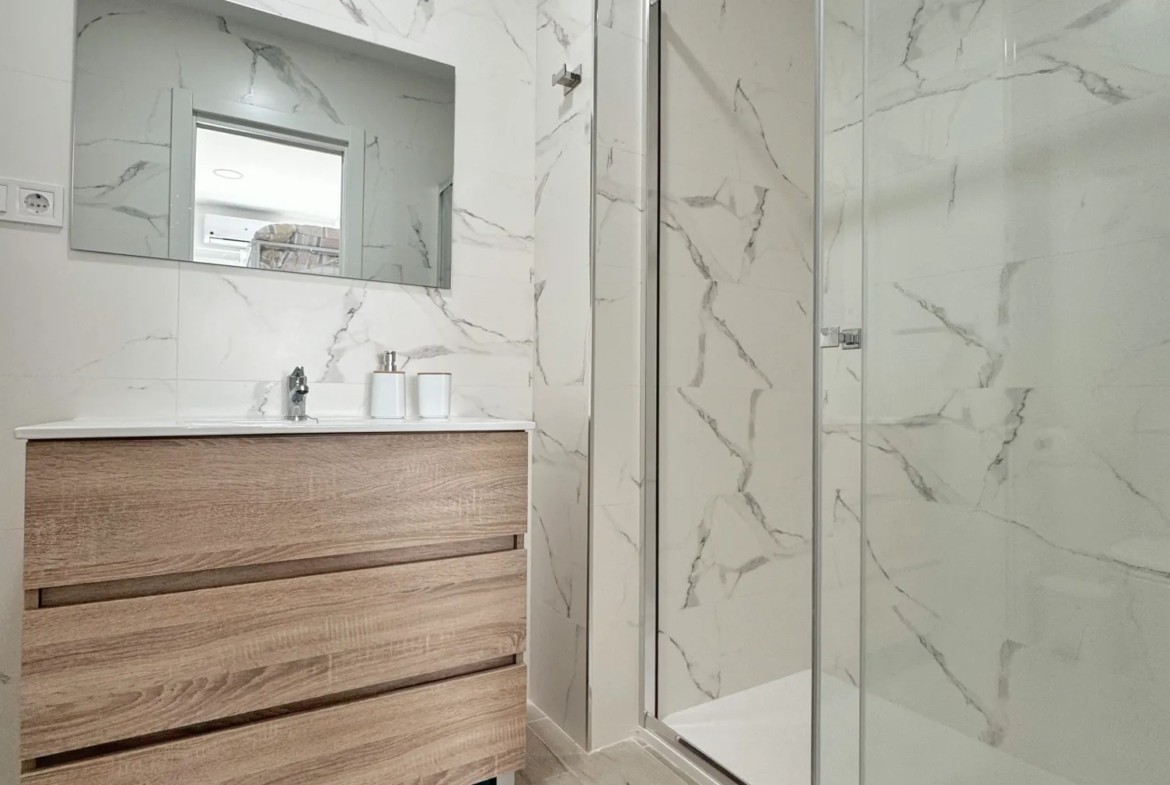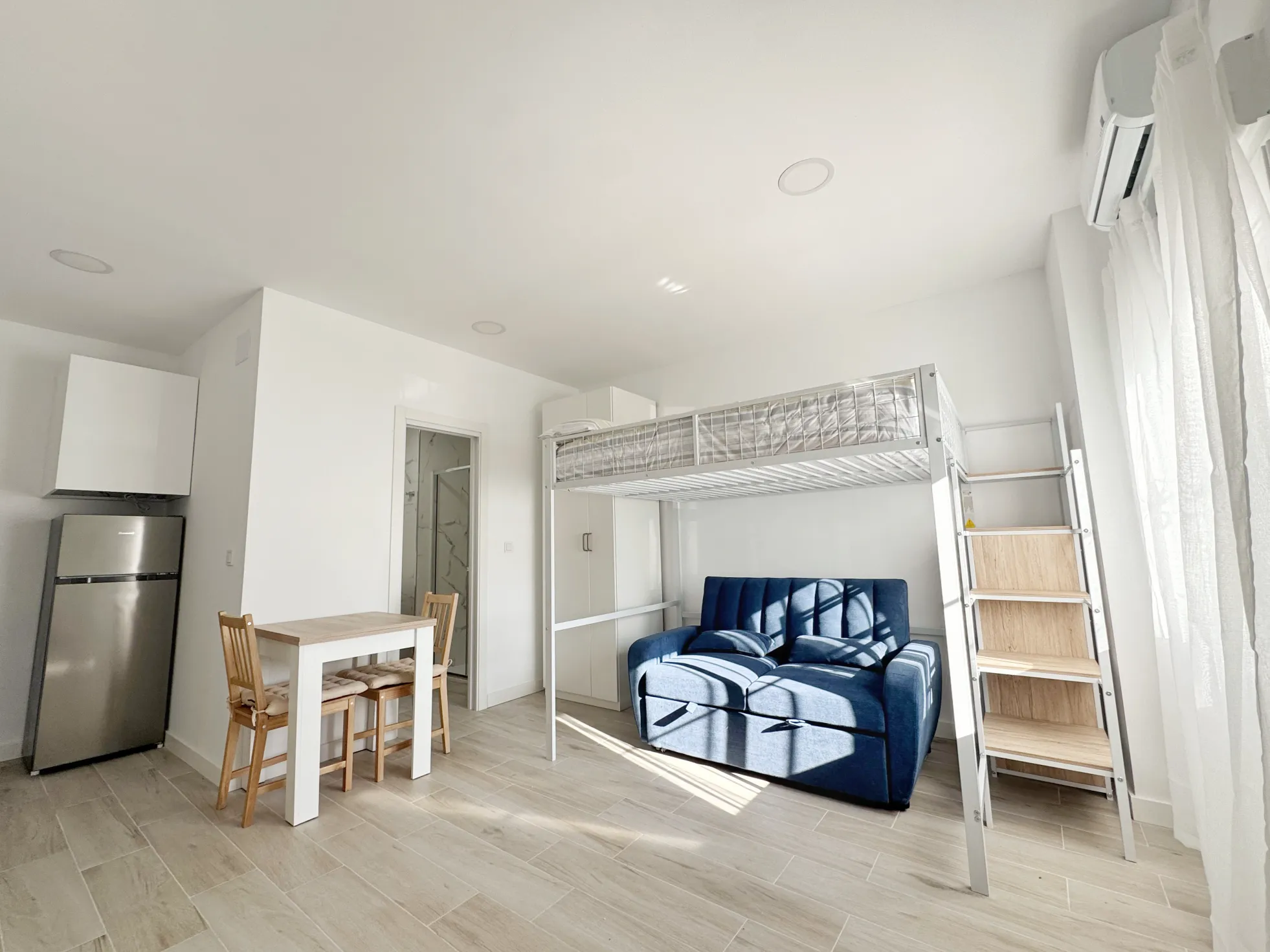 El estudio incluye un cuarto de baño completo con plato de ducha.